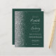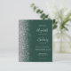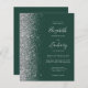 The left-hand edge of this elegant modern wedding invitation features a silver faux glitter border. The customisable text combines silver grey handwriting, copperplate and italic fonts on an emerald green background. Add additional details on the back, along with a QR code to help your guests visit your wedding website.