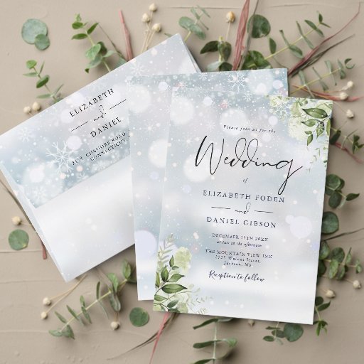 Budget Greenery Monogram Winter Wedding Invitation