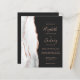 The left-hand edge of this elegant modern wedding invitation features a white and grey watercolor agate border trimmed with faux rose gold glitter. The customisable text combines rose pink handwriting, copperplate and italic fonts on a dark slate black background. The reverse side provides space for wedding details on a solid off-black background, along with a QR code guests can scan to visit your website and RSVP.