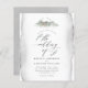Budget Grey Watercolor Leaves & Mountain Wedding Invitation. If you are planning on celebrating your wedding outdoors or simply love greenery and mountains, this wedding invitation will be just perfect for you! Featuring green watercolor leaves around a chic script font, mountains, and a log cabin with trees illustration at the top. Your wedding details are displayed in classy serif typography placed on top of a faded grey watercolor background. Reversing to a matching watercolor background. Perfect for rustic or country-themed weddings.