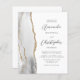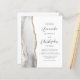 The left-hand edge of this elegant modern wedding invitation features a grey and white watercolor agate border trimmed with faux gold glitter. The customisable text combines charcoal grey script and sans serif fonts on a white background. The reverse side provides space for wedding details on a solid white background, along with a QR code guests can scan to visit your website and RSVP, which saves the cost of printing and mailing separate RSVP cards.