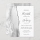 The left-hand edge of this elegant modern wedding invitation features a grey and white watercolor agate border trimmed with faux silver glitter. The customisable text combines handwriting, copperplate and italic fonts in charcoal grey on a white background. The reverse side features a matching grey, white and silver agate design. NOTE: Envelopes are not automatically included with these budget invitations, so please remember to choose the "white envelopes" option!