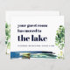 If you're moving to a lake or waterfront home, this budget priced new address card tells the story... with a watercolor lake, dock and lakeside tree. Text on front is in bold dark blue typography (the colour of the water) and reads "Your guest room has moved to the lake." You could change "lake" to "beach" and get the same effect with your text. All example text on front and back of the card can be easily revised with your personal greeting and contact details. We've included the envelope in your purchase, but if you'd prefer to furnish your own envelope, just change your preference to "none" where it says "Select an envelope option."