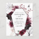 Budget Halloween October 31st Autumn Fall Dark Watercolor Burgundy Wedding Invitations on Black background - includes haunting and scary elegant script typography with modern Flowers and Bat Wings for the special Creepy Wedding day celebration.