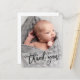 This photo baby thank you note features modern calligraphy thank you in black with large customer photo. The back includes a generic thank you message that you can personalise for each guest or remove it altogether if you prefer to hand right your thank you. Click edit to customise.