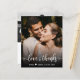 Budget Modern Hand Lettered Wedding "Love and thanks" Script Photo Thank You personalised affordable low budget THIN card. ***PLEASE NOTE! *** BUDGET PAPER/FLYER IS THIN. *** UPGRADE THE PAPER FOR A THICKER PAPER. *** Modern Stylish wedding thank you card template featuring a full vertical photo on the front with overlay text "Love and thanks" in a swirly hand lettered typography script font with swashes in white on the picture. Add your custom name and thank you message. If you prefer to handwrite your note, just delete the sample text to make more space. Pretty, elegant low cost cheap cards. If You need help, please contact designer!