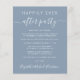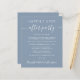 Budget-friendly dusty blue elopement or private wedding announcement and wedding reception invitation. The front features "Happily Ever After Party" in a mix of simple white typography and a contemporary white script with swashes, and you can personalise your message and invitation and add your names in a signature-like script. The reverse side features your first names and wedding date.