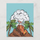 Lets have a blast volcano dinosaur birthday invitation. Cute dinosaur and volcano cartoons on a dark blue background
