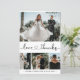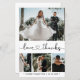 Budget Modern, Elegant Heart Font Script Wedding Photo Collage Thank You Card in Gold and White. Stylish, minimalist wedding card template featuring four (4) grid photo collage on the front and one (1) photo on the reverse side. "Love and thanks" text in a cursive hand lettered calligraphy cute heart font script with swash tail. Add your name and thank you message. If You need help or matching item, please contact to designer!