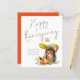 Cute Hedgehog Script Happy Thanksgiving. A budget price SMALLER 4.5” x 5.6” flat card for your thanksgiving greetings on a shiny SEMI GLOSS 110 lb card stock (similar to the thickness of a postcard) PLEASE NOTE: The envelope supplied with this card is slightly larger than the card itself. A sweet hedgehog with a leaf umbrella and trendy set typography for Happy Thanksgiving. Easily personalise your names at the bottom and add an optional message on the back if you wish.
