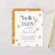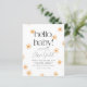 An elegant baby shower invitation with hand-drawn sun illustrations scattered over the page. The text reads "hello, baby!" in modern serif typography with the mum-to-be's name in script calligraphy. Below, the event details are printed in simple bold capitals. There is a template section for registry details at the bottom of the card. These cards reverse to a pattern of white suns over an orange background. This design is gender neutral and can be used for 'you are my sunshine', 'ray of sunshine', and 'here comes the sun' themes. As part of the budget selection on Zazzle, this sheet isn't a standard invite size or paper quality. If you want this design on an invitation card you can find it in the collection or use the Zazzle Make Machine to transfer it onto the product of your choice. View the collection on this page for matching items or visit our store for more sunshine baby shower invitations!