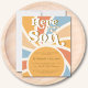 This budget sun-themed boy's baby shower invitation features "Here Comes The Son" in stylish retro typography on a colourful sunburst background.