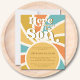 This budget sun-themed boy's baby shower invitation features "Here Comes The Son" in stylish typography on a colourful sunburst background.