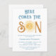 Invite family and friends to your sun-themed baby shower with this cute budget boys' baby shower invitation.