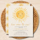 Invite family and friends to your sun-themed baby shower with this cute budget baby shower invitation. It features the text "Here Comes The Sun" in stylish typography with an adorable yellow watercolor sun on a soft cream background. The back is decorated with a smiling sun pattern. Easily customisable. Because we create our artwork you won't find this exact image from other designers. Original Watercolor © Michele Davies.