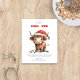 Budget Highland Cow New Address Merry Christmas. A budget priced smaller 4.5 x 5.6” 110lbs semi-gloss, similar in thickness to a postcard. There is ONE per sheet. Festive cuteness for your combined holiday wishes and moving announcement, with this fun design with a sweet highland cow in his Santa hat and personalise your greeting and new address details beneath.
