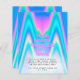 Custom Neon Holographic Iridescent Y2K universal Party Invitation cards featuring eyecatching bright abstract vaporwave background and your personalised text and party name. Perfect for birthday invitations, baby shower invitations, quinceanera, sweet 16 party invitations and any colourful party.