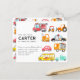 Cute Honk Beep Vroom Fire Truck Golf Cart Police Car Dump Truck School Bus Construction Crane Transportation Kids Transport Birthday Invitation