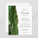 The left-hand edge of this elegant modern wedding invitation features a hunter green watercolor agate border trimmed with faux gold glitter. The customisable text combines handwriting, copperplate and italic fonts in charcoal grey on a white background. The reverse side provides space for wedding details on a solid white background, along with a QR code guests can scan to visit your website and RSVP. NOTE: Envelopes are not automatically included with these budget invitations, so please remember to choose the "white envelopes" option!