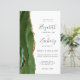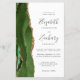 The left-hand edge of this elegant modern wedding invitation features a hunter green watercolor agate border trimmed with faux gold glitter. The customizable text combines charcoal gray handwriting, copperplate and italic fonts on a white background. Add additional details on the back, along with a QR code to help your guests visit your wedding website.