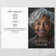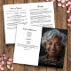 Custom photo funeral programs with obituary and order of service offer a dignified and personalised way to honour a loved one’s life. Featuring a full-page memorial photo with elegant script and serif fonts, this template includes space for acknowledgements, pallbearers, flower bearers, and a heartfelt tribute message. The coordinating inside layout provides a structured order of service alongside space for a written obituary or life summary, making it ideal for memorials, homegoing ceremonies, or celebrations of life. This customisable funeral program design blends simplicity and elegance to create a meaningful keepsake for family and guests.