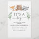 Budget Woodland Animals - Bear, Racoon, Fox Eucalyptus Greenery Botanical Watercolor Spring Gender Neutral It's a Boy Baby Shower Invitations on white background - includes beautiful and elegant script typography with modern botanical leaves and greenery for the special Mother to Be celebration.