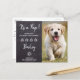 Add your pup's favourite photo and personalise with pups name and family name! These budget new pet announcement postcards need to be mailed as oversized postcards so may incur standard postage fees but they don't need an envelope or a return address label. Type your personal message to family and friends on the back or delete to handwrite.