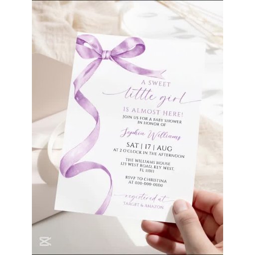 Budget Lavender Bow Sweet Girl Baby Shower Invitation - A charming and affordable baby shower invitation featuring an adorable purple bow design. Perfect for celebrating the upcoming arrival of a sweet baby girl with elegance on a budget.