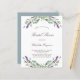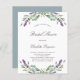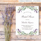 A white background decorated with lavender flowers and eucalyptus greenery. Personalise and a name and details.