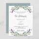 A white background decorated with lavender flowers and eucalyptus greenery. Personalise and your names and details.