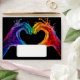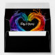 From the vibrant “Heart of Pride” collection, this wedding envelope captures the spirit of inclusivity and joyful celebration. The front showcases the collection’s signature artwork — two brilliantly colored hands forming a radiant heart against a deep black background — creating a bold, meaningful introduction to your wedding suite.