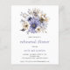 A budget price smaller 4.5" x 5.6" paper alternative. Envelopes are an optional extra. A bouquet of beautiful lilac, purple and cream watercolor florals and foliage is at the top and stylish typography is below which is easily personalised to the details of your Rehearsal Dinner. A coordinating lilac coloured background is on the back.