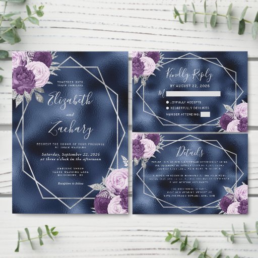 Floral Silver Geometric Navy Blue Lilac WeddingDesigned by Akhates Designs