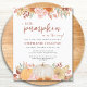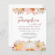 This charming budget invitation is decorated with watercolor pumpkins and autumn foliage. It says "A little pumpkin is on the way" in stylish script typography.