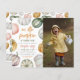 Our little pumpkin any age birthday invitation - perfect for a little girl having an October, fall, or Halloween-themed party. The left side of this invite features a frame of different colored hand-painted watercolor pumpkins: orange, green, purple, pink, and even blue! Inside the frame, there is modern brush lettering and stylish typography to display the birthday girl's name, age, and event details. We have chosen a boho color scheme of pastel orange, green, and pink for the typography - but you can change any of these to suit your needs! On the right-hand side is a vertical photo of your choice! Add your own custom photo to this design to showcase your little one on their special day! We love photo invitations, as they double up as super-cute keepsakes, to stick on the fridge or add to a photo album! Cards reverse to a fun pattern of the same cute pumpkins. To get started customizing these cards, simply click on the "Personalize this template" button and change the placeholder text. If you would like to access the more advanced editing options, select "Click to customize further" and you will be able to edit fonts, colors, placement, and more! As part of the budget selection on Zazzle, this sheet isn't a standard invite size or paper quality. If you want this design on an invitation card you can find it in our store or use the Zazzle Make Machine to transfer it onto the product of your choice. Feel free to contact me with any questions, but please note that I can't modify an existing order! More autumn birthday party invitations are available in our store!
