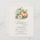This cute baby shower invitation features a watercolor image of two pumpkins in pastel shades of sage green and orange, adorned with white and orange flowers. Below, the words "a little pumpkin is on the way," appear, with the word "pumpkin" in sage green handwriting script decorated with curlicues in imitation of pumpkin vines. Personalise the text with the name of the mum-to-be in orange script and the details in charcoal grey sans serif font on a beige background. Ideal for a gender-neutral fall baby shower.