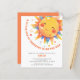 Budget Little Ray of Sunshine Retro Baby Shower. A budget price smaller 4.5 x 5.6” on 110gsm semi-gloss, similar in thickness to a postcard. There is ONE per sheet.. A cute colourful sunshine and a 70s vibe. Change text and background colours if you so wish via the edit further option and personalise the text to your own details.