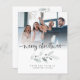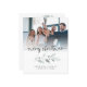 Budget Logo Photo Company Foliage Merry Christmas A budget price SMALLER 4.5” x 5.6” flat card for your festive greetings on a shiny SEMI GLOSS 110 lb card stock (similar to the thickness of a postcard) PLEASE NOTE: The envelope supplied with this card is slightly larger than the card itself. Simply replace the sample photo with your own, which is overlaid with a tinted gradient to fade behind the set text Merry Christmas. The rest of the words you can easily personalise on both sides, On the back replace the sample image with your business logo or remove this if preferred. An artsy sprig of winter foliage is on each side to add to the festive touch! Text colours can be changed if you wish to better suit your image and branding via the customise further option.