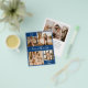 Elegant, modern, minimalist navy and white hand written 4 photo collage personalised wedding thank you personalised affordable low budget THIN card. ***PLEASE NOTE, SCROLL DOWN FOR MORE INFO!*** Stylish wedding thank you card template featuring four (4) photo on the front and one (1) photo on the back side. With the text "Love and thanks" in a cursive hand lettered typography swash-tail font script in white colour on navy blue background. Little heart shape between the names. Personalise your name and thank you message. *** PLEASE NOTE! *** BUDGET PAPER/FLYER IS PAPER THIN. *** UPGRADE THE PAPER FOR A THICKER PAPER. *** Traditional Cardstock with Envelopes: https://www.zazzle.com/love_and_thanks_script_navy_white_photo_wedding_th_thank_you_card-256425124174050718 https://www.zazzle.com/love_and_thanks_script_navy_white_collage_wedding_thank_you_card-256483588594792679