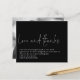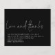 Budget Script Love Thanks Photo Wedding Thank You Black. Love and thanks is in a set handwritten style with the details beneath. Lots of white space at the top for a contemporary touch! Easily personalise the rest of the text to your own details and replace the sample photo on the back with your own which will automatically change to black and white. If you wish to remove the black and white filter click customise further and chose the filter option and select No Filter.