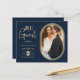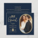 Inexpensive Cheap Navy Blue Luxury Golden Oval Frame Charming Photo Wedding Save the Date Card with Envelope.