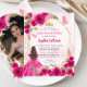 Modern Magenta Pink Blush Pink Gold Glitter Sparkle Floral Rose Butterfly Princess Tiara Crown Quinceañera Photo Birthday Invitation