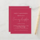 There are two paper options to choose from for this size (4.5 x 5.6”) in the Budget range. For this product, I would recommend the semi-gloss which is a 110 gsm card stock, similar in thickness to a postcard. The Satin option is a much thinner paper 80gsm. The default is set to semi-gloss. PLEASE NOTE there is ONE per sheet. Budget Magenta Wedding Evening Reception Invitation. A set handwritten style for Evening Reception and the rest of the text you can easily personalise. The text and background colours can be changed to any or your choice via the customise further option.