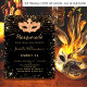 For an elegant Masquerade, Sweet 16, 16th birthday. A stylish black background. Decorated with faux gold glitter dust and a masquerade mask. Personalise and add a name, age and party details. The name is written with a hand lettered style script