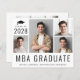 Budget-friendly modern MBA masters degree graduation announcement featuring a 4 picture photo collage, "MBA Graduate" written in large capital letters and his or her class year, name and school or university in simple typography. On the reverse side, add an additional photo and a personalized message.