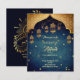 Budget Mehndi / Sangeet Indian Arabian Moroccan style patterns design dark teal blue colour invitation.