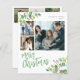 Modern stylish Merry Christmas green handwritten calligraphy script 6 family photo collage simple white budget affordable holiday card with your custom personalised text on both sides featuring watercolor botanical greenery and holy berries.