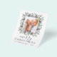 Budget Rustic Winter Merry Christmas Photo Card with Holiday Dusty Blue, Green and Brown Greenery, Pine Tree Branches, Pinecones and simple Background.