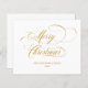 Budget Personalised Merry Christmas Gold Script Typography Holiday Card. Send holiday greetings and message to family and friends with this modern elegant holiday card. Personalise this flat card by adding your family name and message. Choose between a wide array of paper types. Easy to customise. Get yours today!