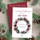 Traditional elegant rustic modern dark red burgundy Christmas seasonal floral wreath with holly berries and fir branches Merry Christmas family greeting holiday moving announcement card printed on a PAPER FLYER (advertising type of paper). ++++++++ Easy to personalise with your family name, new address, and wishes! +++++++++++++++++++ PLEASE READ THIS BEFORE PURCHASING! This is a cheap budget invitation printed on a FLYER and suitable for folded mailings +++ Please note that BUDGET PAPER IS THIN - You can upgrade to have it printed on cardstock ++++ ENVELOPES NOT INCLUDED. You can upgrade to a cardstock version.